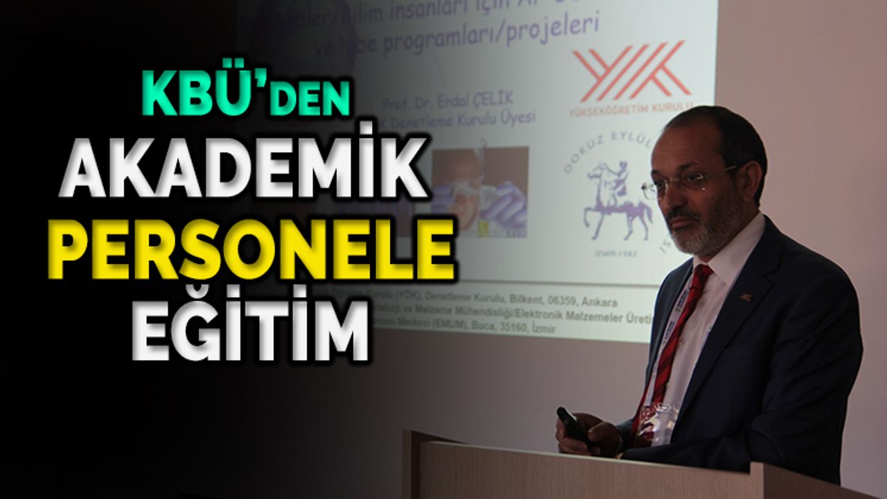 KBÜ Rektörlüğü tarafından, üniversitelerin önemli unsurlarından bilimsel araştırma ve girişimcilik konularında farkındalık ve bilinç artırmaya yönelik çalışma katkı sağlamak amacıyla KBÜ akademik personeline “Araştırma Projesi Hazırlama ve Yürütme Eğitimi” veriliyor.