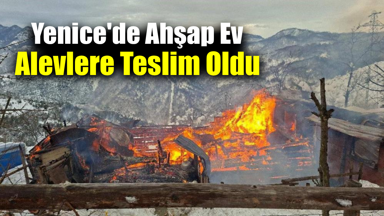 Karabük'ün Yenice ilçesinde alevlere teslim olan ahşap ev tamamen yanarak kullanılmaz hale geldi.