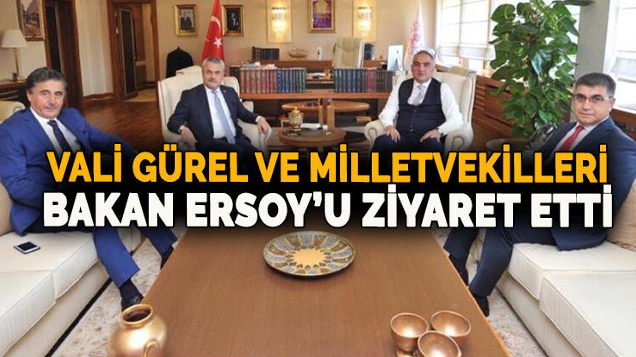 Karabük Valisi Fuat Gürel, AK Parti Karabük Milletvekilleri Niyazi Güneş ve Cumhur Ünal; Kültür ve Turizm Bakanı Mehmet Nuri Ersoy’u makamında ziyaret ederek kent turizmi hakkında bilgi verdiler.Vali Fuat Gürel, beraberinde AK Parti Karabük Milletvekilleri Cumhur Ünal ve Niyazi Güneş ile birlikte Kültür ve Turizm Bakanı Mehmet Nuri Ersoy’u makamında ziyaret etti. Kentte yapımı devam eden ve yapılması planlanan yatırımlar hakkında karşılıklı bilgi alışverişinde bulundular.Ziyaret sırasında Bakan Ersoy’a başta Eskipazar Hadrianapolis Antik Kentinde devam ediyor. Kazı çalışmaları olmak üzere, Kültür ve Turizm Bakanlığı'nca Karabük’te devam eden yatırımlar hakkında detaylı o k bilgi verildi.