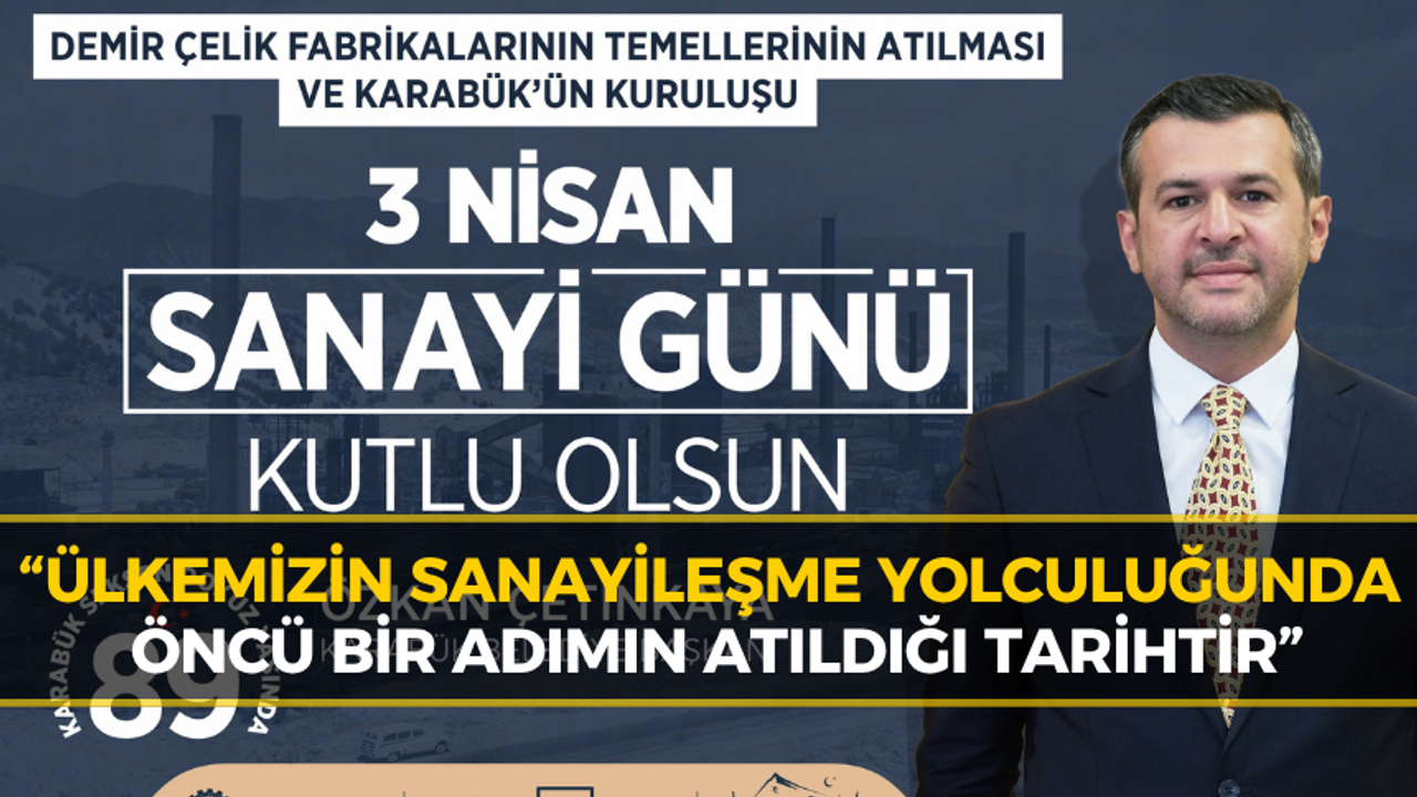 Karabük Belediye Başkanı Özkan Çetinkaya, 3 Nisan Karabük’ün kuruluşunun ve Demir Çelik fabrikalarının temellerinin atılışının 89. yıl dönümü dolayısıyla bir kutlama mesajı yayımladı.
