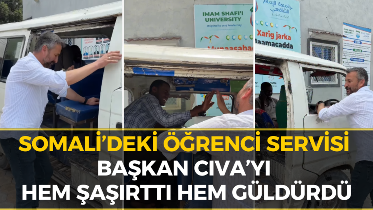 Başkan Serkan Cıva, Somali’de gördüğü minibüs karşısında şaşkınlığını gizleyemedi. Kapısı, penceresi ve hatta farları olmayan aracın bir "öğrenci servisi" olduğunu öğrenen Cıva, “Kapı yok, pencere yok. Somali'nin öğrencilerini taşıyor bu. Vay arka cam sizlere ömür yok. Son sinyal yok.” İfadelerine yer verdi.