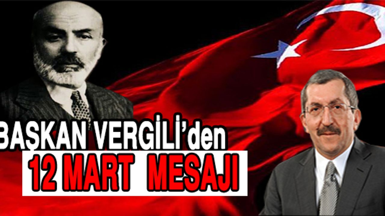 Milletleri millet yapan en önemli değerler, birlik, beraberlik, dil, inanç, vatan, namus, şeref, bayrak, tarih gibi insani hasletlerdir diyen Başkan Vergili; “12 Mart ülkemiz ve milletimiz için önemli bir gündür. Zor şartlar altında varlık mücadelesi verilen 1921 yılının 12 Mart’ında, ülkemizin büyük şairi Mehmet Akif’in yazdığı eser TBMM tarafından millî marşımız o k kabul edildi. Büyük devlet ve millet olmanın göstergelerinden biri de tarihte yaşanan olayları ve insanlarımızı hayırla yâd etmektir. Alçak gönüllü, vatanına aşık bir münevver olan Mehmet Akif Ersoy, İstiklal Marşı’nı milletimize ve ordumuza armağan ederek tüm eserlerini topladığı Safahat’a almamış ve böylelikle bizlere ne kadar büyük bir vatansever olduğunu bir kez daha göstermiştir. Bu duygu ve düşüncelerle İstiklal Marşı’nın kabul edilişinin 96. yılında bu güzel vatanı bizlere emanet eden, başta Mustafa Kemal Atatürk ve silah arkadaşları olmak üzere tüm şehitlerimizi, gazilerimizi ve merhum Mehmet Âkif Ersoy’u saygıyla ve rahmetle anıyorum” dedi.