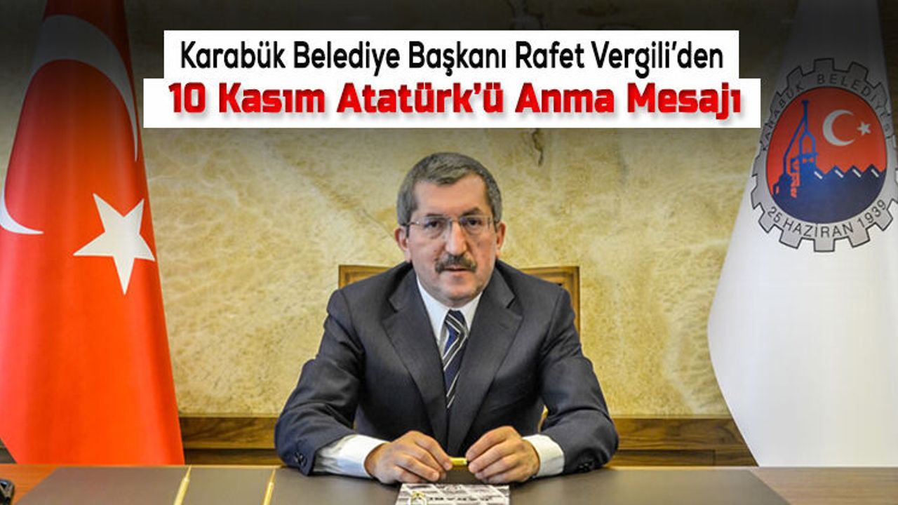 Karabük Belediye Başkanı Rafet Vergili, cumhuriyetin kurucusu Gazi Mustafa Kemal Atatürk’ün vefatının 81. yıl dönümü münasebetiyle bir mesaj yayınladı.Başkan Vergili mesajında; “Adını dünya tarihine yazdıran büyük bir lider. Türkiye Cumhuriyeti'nin kurucusu Gazi Mustafa Kemal Atatürk'ün aramızdan ayrılışının 81. yıl dönümünde özlem, saygı, sevgi ve rahmetle anıyorum. Bugün yas günü değil fikirlerine ve gösterdiği hedeflere ulaşmak için daha çok çalışmamız ve her zamanki gibi bir ve beraber olmamız gereken bir gündür. Son nefesine kadar ülkesine ve milletine hizmet etmiştir. Tüm dünyanın ayakta alkışladığı büyük önder aramızdan ayrılışının 81. yıl dönümü. Gazi Mustafa Kemal Atatürk’ü, kahraman şehitlerimizi, gazilerimizi, dava ve silah arkadaşlarını, bir kez daha rahmet ve şükranla anıyorum.” ifadelerini kullandı.