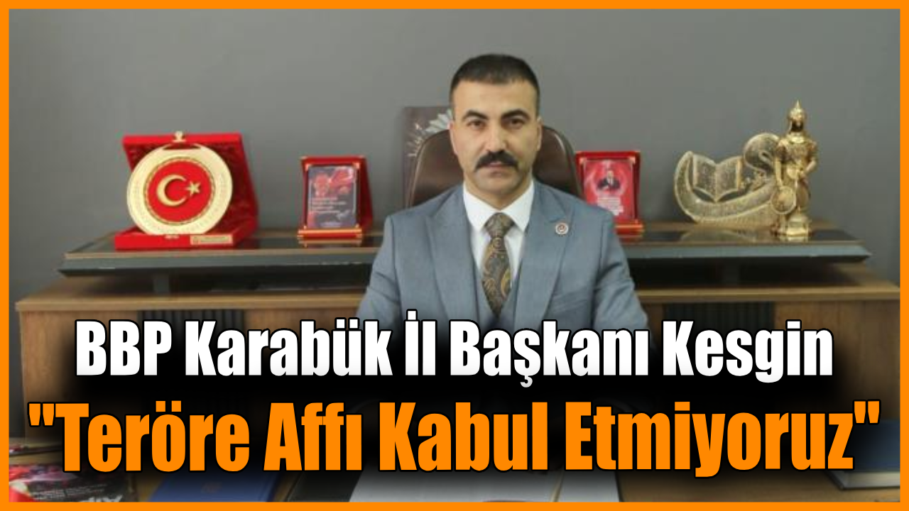 Büyük Birlik Partisi (BBP) Karabük İl Başkanı Murat Kesgin, terör ve terörizme ilişkin görüşlerini kamuoyuna açıkladı. Kesgin, terörün her türlüsünü kesinlikle reddettiklerini ve teröre af ya da muafiyet sağlanmasına karşı olduklarını belirtti.