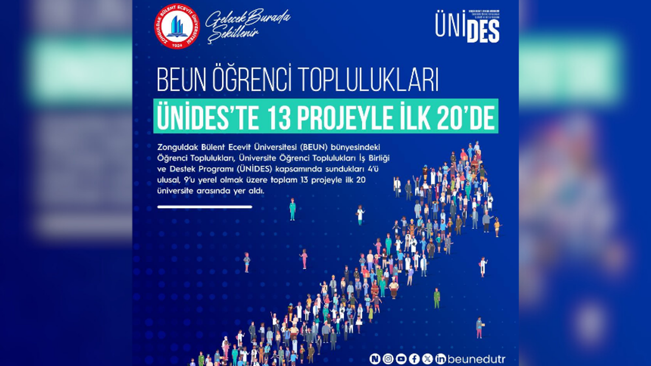 Zonguldak Bülent Ecevit Üniversitesi (BEÜ) öğrenci topluluklarının ÜNİDES kapsamında elde ettiği başarıdan büyük mutluluk duyduğunu belirten BEÜ Rektörü Prof. Dr. İsmail Hakkı Özölçer, konuya ilişkin yaptığı açıklamada düşüncelerini paylaştı: