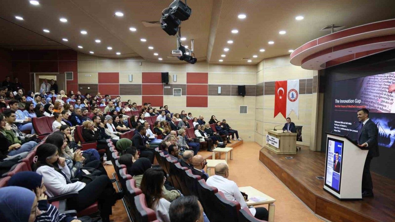 Konferansın konuşmacısı, ABD’nin Mayo Klinik Tıp ve Bilimsel Araştırma Merkezi Kardiyovasküler İlaç Bölümü Öğretim Üyesi ve Stratejik İlişkiler Başkan Yardımcısı Prof. Dr. Mohammad Alkhouli, tıp ve sağlık teknolojilerinde yenilikçi yaklaşımların geleceğini ele aldı. Prof. Dr. Alkhouli, tıbbi inovasyonun gelecekte sağlık sistemlerini nasıl dönüştüreceğine dair önemli değerlendirmelerde bulundu.
