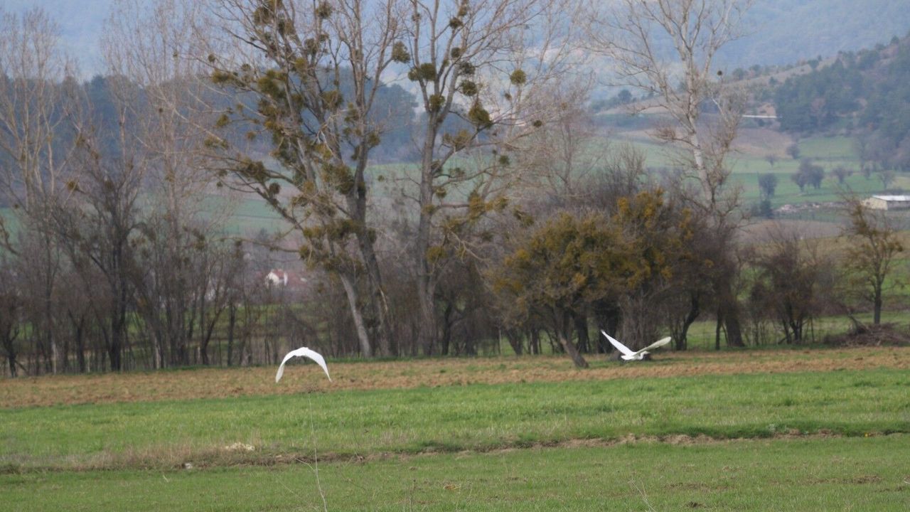 Bolu’da, nadir rastlanan beyaz balıkçıl kuşlar sürü halinde görüntülendi.