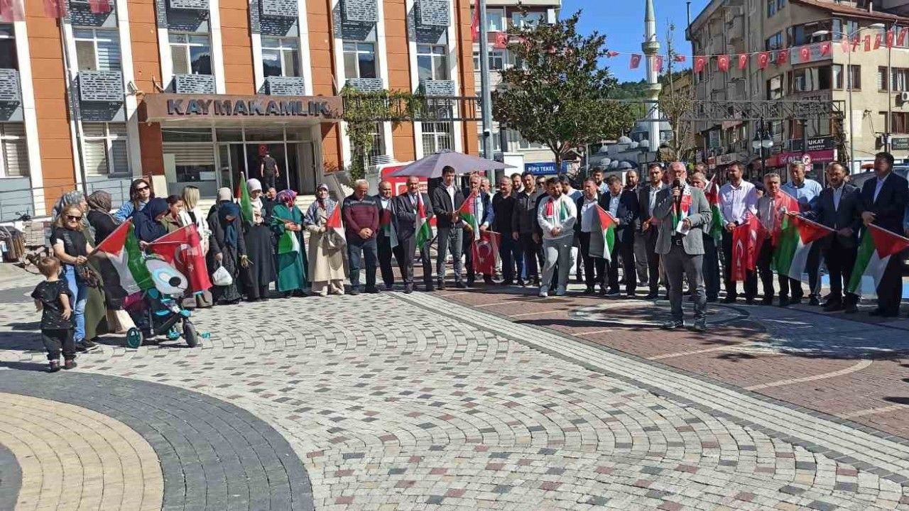 Zonguldak’ın Devrek ilçesinde, Devrek Birlik Kardeşlik Sivil Toplum Kuruluşları Platformu tarafından İsrail’in Filistin’e yönelik saldırılarını protesto etmek ve Gazze’ye giden yardım gemisine destek olmak amacıyla basın açıklaması düzenlendi.
