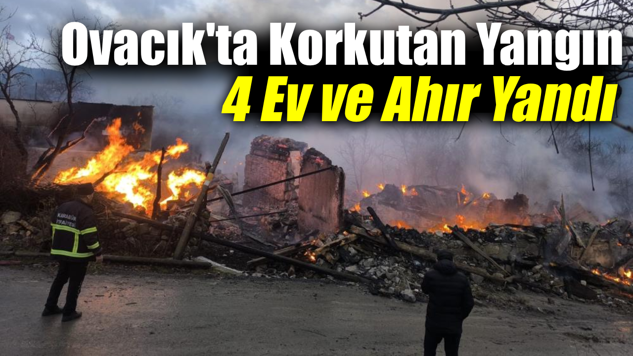 Karabük’ün Ovacık ilçesine bağlı Doğanlar köyünde sabaha karşı çıkan yangında 4 ev ile bir ahır tamamen yanarak kullanılamaz hale geldi.