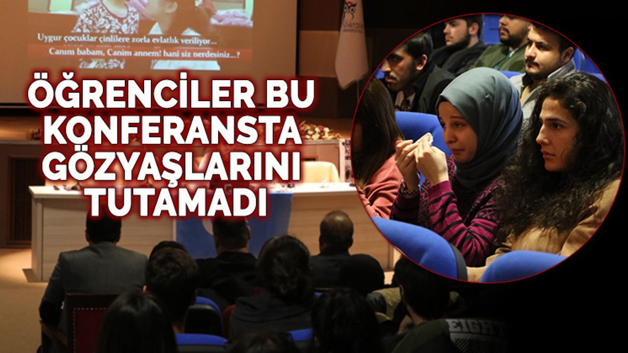 Üniversite öğrencileri Doğu Türkistan için düzenlenen konferansta izledikleri karşısında gözyaşlarına hakim olamadı.Karabük Üniversite (KBÜ) Anadolu Kültür Medeniyetleri Araştırma Kulübü tarafından "Doğu Türkistan'da Neler Oluyor?" konferansı düzenlendi. Konferansta Çin'de zulme uğrayan Uygur Türklerinin yer aldığı videoyu izleyen öğrenciler gözyaşlarını tutamadı.KBÜ Hamit Çepni Konferans Salonu'nda düzenlenen konferans saygı duruşu ve İstiklal Marşı ile Doğu Türkistan marşının okunmasıyla başladı. Ardından Çin'in Doğu Türkistan'da Uygur Türklerine yapmış olduğu işkence ve Uygur Türkü çocuklarının türkü ve şiirlerin yer aldığı video izlendi. Duygu dolu anların yaşandığı konferansta bazı üniversite öğrencileri gözyaşlarına hakim olamadı.