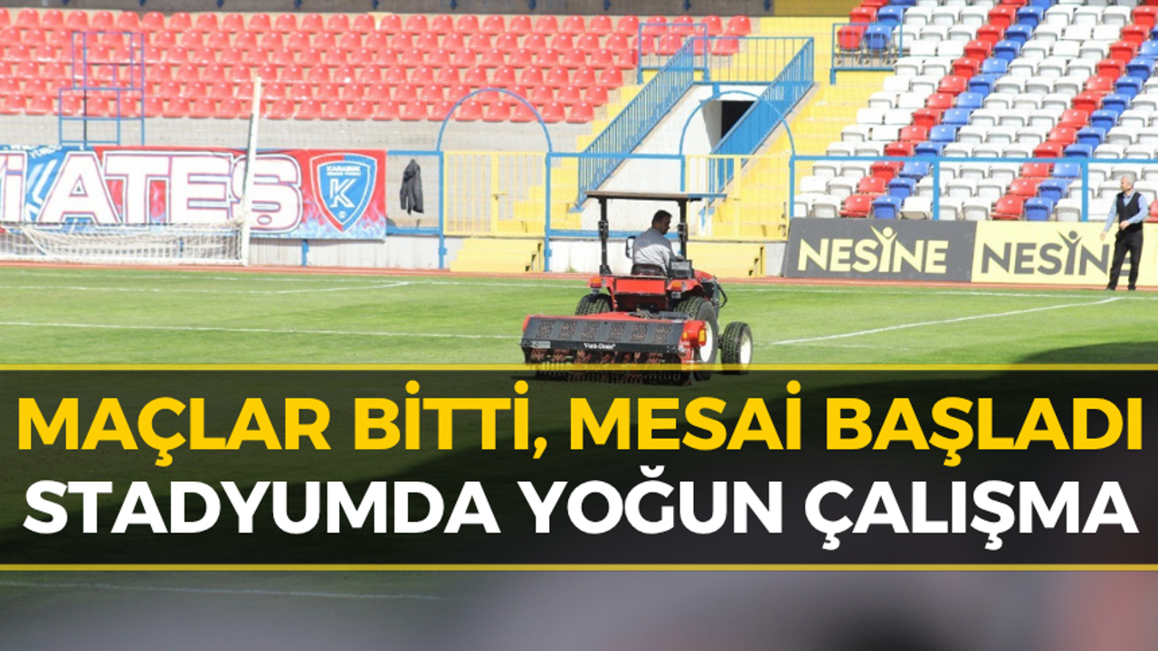 Karabük’ün TFF 3. Lig’de mücadele eden temsilcisi Karabük İdman Yurdu’nun iç saha karşılaşmalarının tamamlanmasıyla birlikte, stadyum çim zemininin yeni sezona hazırlanması için çalışma başlatıldı.