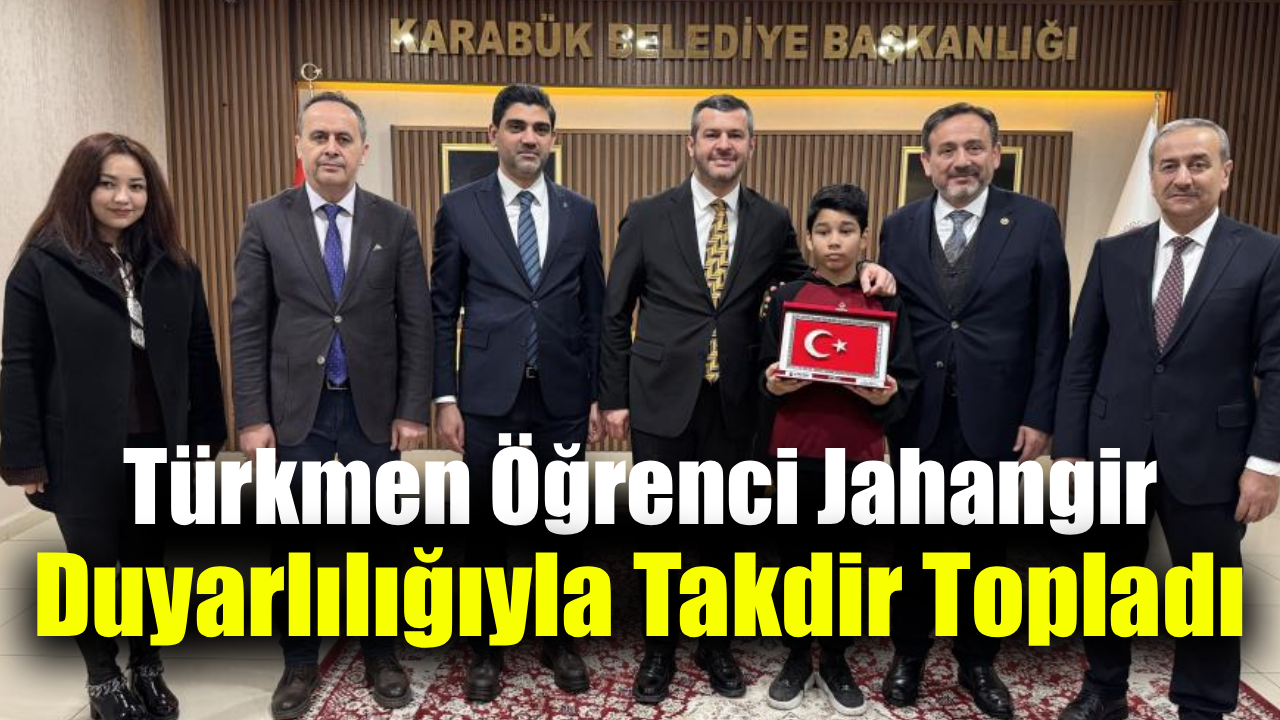 100. Yıl Mahallesi'ndeki Yavuz Sultan Selim Ortaokulu'na giderken İstiklal Marşı'nın okunduğunu duyan ve kar yağışı altında saygı duruşuna geçerek marşa eşlik eden öğrencinin örnek davranışı takdir toplamaya devam ediyor. Duyarlı davranışıyla gündeme gelen Türkmenistan uyruklu 12 yaşındaki Jahangir Gapurjanov, Karabük Belediye Başkanı Özkan Çetinkaya tarafından belediyeye davet edildi.