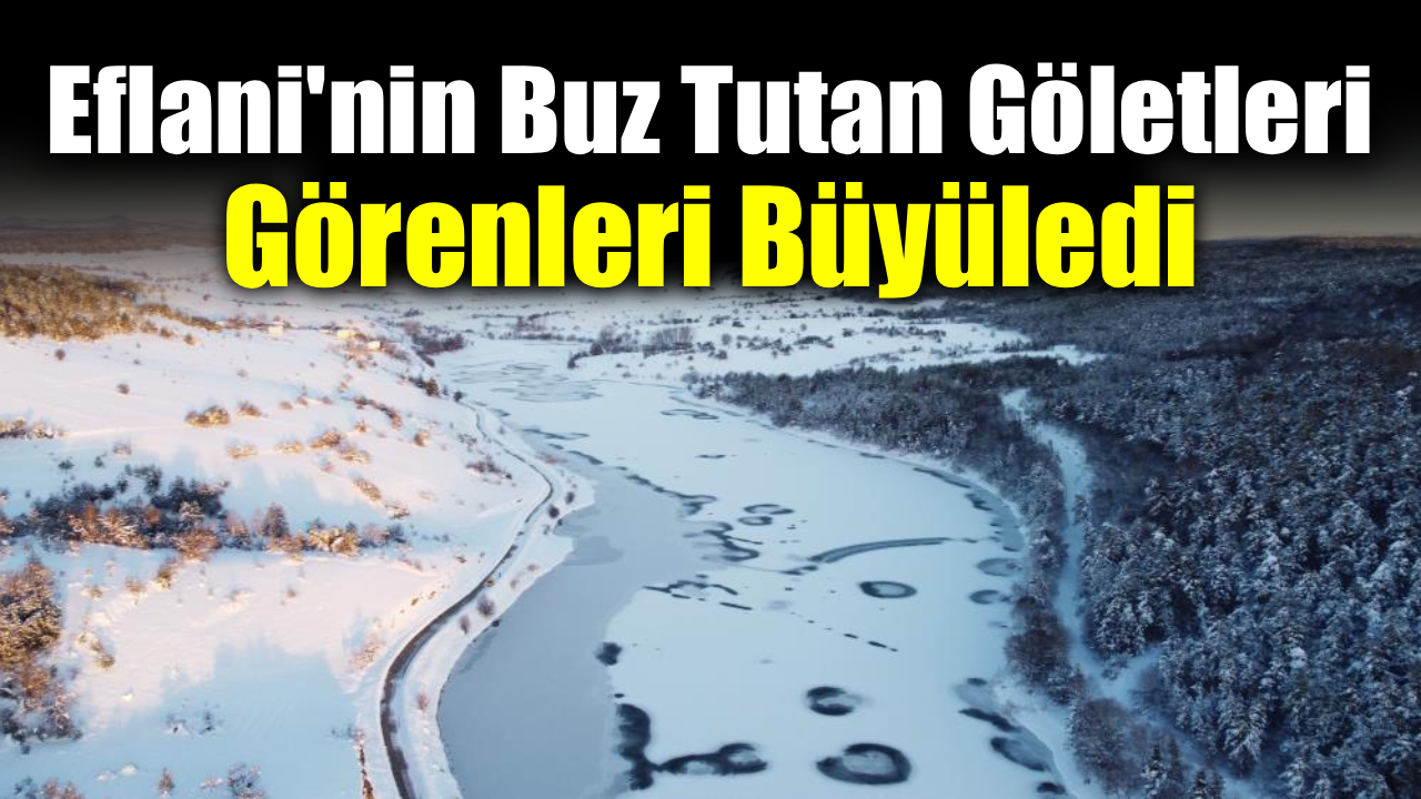 Karabük'ün Eflani ilçesinde kar yağışı ve eksi 20 dereceye kadar düşen hava sıcaklıkları sonrası yüzeyi buz tutan göletler, oluşan kartpostallık manzaralarla dron ile görüntülendi.