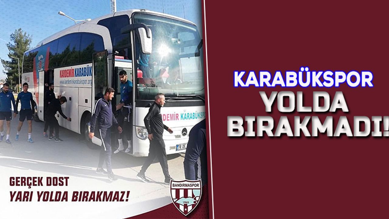 TFF 2. Lig Kırmızı Grup'ta mücadele eden Kardemir Karabükspor, ligin 10. haftasında sahasında karşılaşacağı Bandırmaspor'un otobüsünün bozuldu. Yolda kalmasının ardından rakibine kendi takım otobüsünü yolladı.TFF 2. Lig'in 10. haftasında Kardemir Karabükspor'la karşılaşacak olan Bandırmaspor kafilesini taşıyan otobüs yolda arızalandı. Kulüp yöneticileri başka bir otobüs için arama başladı. Olaydan haberdar olan Karabükspor yönetimi kendi takım otobüsünü gönderdi. Bandırmaspor'un Karabük'e gelmesini sağladı.Bu büyük jest karşısında mutlu olan Bandırmaspor yönetimi, sosyal medyadan Karabük ekibi için teşekkür mesajı yayımladı."Gerçek Dost Yarı Yolda Bırakmaz!" başlığıyla paylaşılan mesajda, "Maç için yolculuğumuz esnasında, aracımızın arızalanmasının ardından, kendi takım otobüsünü yollayan Kardemir Karabükspor'a sonsuz teşekkürlerimizi sunarız. İyi niyet ve samimiyetini tekrar gösteren Karabükspor camiasının bu yardımını unutmayacağız. Dostça bir karşılaşma olması dileği ile" denildi.Karabükspor da Bandırmaspor'un yapmış olduğu paylaşımı sosyal medya hesaplarından paylaştı. "Kardemir Karabükspor camiası o k, rekabeti daima 'dostça' yapmaya önem veriyor ve bu hususta gayret gösteriyoruz. Samimi ve dostça yaklaşımlarından dolayı Bandırmaspor camiasına teşekkür ederiz." ifadelerini kullandı.İki rakip arasındaki bu yardımlaşma birçok kulübün taraftarı tarafından da alkış aldı. Sosyal medyada da gündem oldu.Karabükspor Basın Sözcüsü Kerem Demir, zor durumda olsalar da şartlarının elverdiğince rakibe yardım etmeye çalıştıklarını söyledi. Demir açıklamasının devamında ise, "Geçirdiğimiz zor günler, bulunduğumuz yer itibarıyla borç ve maddi sorunlarla boğuşuyor olabiliriz. Ama yolda kalmış ve yardım isteyen grup liderimiz de olsa şartlarımız elverdiği sürece yardım etmeye çalışıyoruz. İmkanlarımız sınırlı olabilir ama insanlığımız sınırlı değil. Koca bir şehri temsil ediyoruz. Bugün olduğu gibi bin 500 derecede çalışan işçinin alın teri. Emeğin başkenti renklerini dünya devi KARDEMİR'in bacalarından çıkan mavi ateşten almış. Türk futbolunun köklü bir kulübüne de yakışanda budur. Skorlar geçici dostluklar bakidir. Yarın tekrar aynı olay olsa yine gider alır geliriz. Bu vesile ile sahada rakibimiz ama bundan sonra ebedi dostumuz olan Bandırmaspor'a tekrar geçmiş olsun dileklerimizi iletiyoruz" dedi.