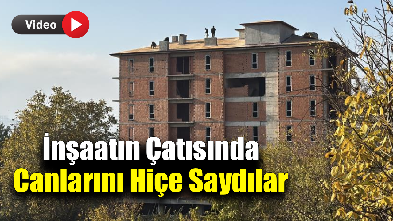 Karabük'te 6 katlı bir inşaatın çatısında işçilerin herhangi bir güvenlik önlemi almadan çalıştığı anlar cep telefonu kamerasına yansıdı.