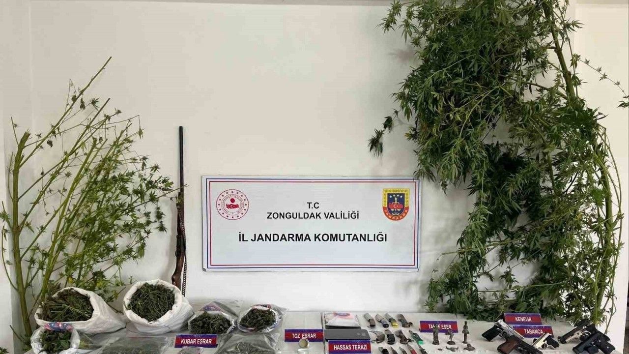 Belirlenen 6 adrese eş zamanlı olarak yapılan aramalarda; 2 kilo 864 gram kubar esrar, 16 gram toz esrar, 2 kök kenevir bitkisi, 1 adet hassas terazi ve 96 adet kilitli poşet ele geçirildi. Operasyonda ayrıca 5 adet kurusıkı tabanca, 1 adet av tüfeği, tarihi eser niteliğinde olduğu değerlendirilen 5 obje, 1 adet sikke ile 12 adet bıçak ve kama bulundu.