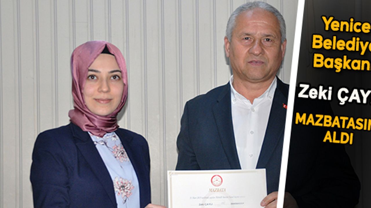 31 Mart'ta yapılan mahalli idareler seçimlerinde Milliyetçi Hareket Partisinden (MHP) Yenice Belediye Başkanı seçilen Zeki Çaylı mazbatasını aldı.