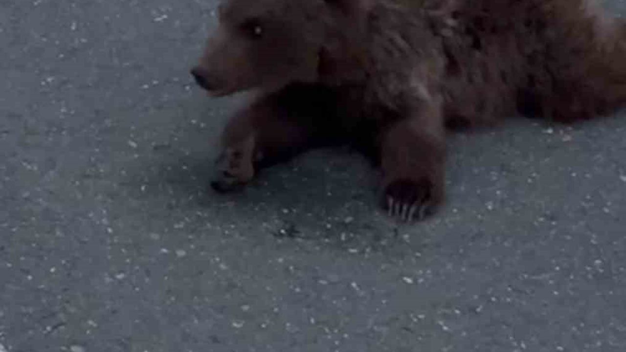 Olay, Safranbolu-Bartın kara yolunun Beştepeler mevkiinde meydana geldi. Güzergahı kullanan sürücüler yolun ortasında hareket etmekte zorlanan ayıyı fark etti.