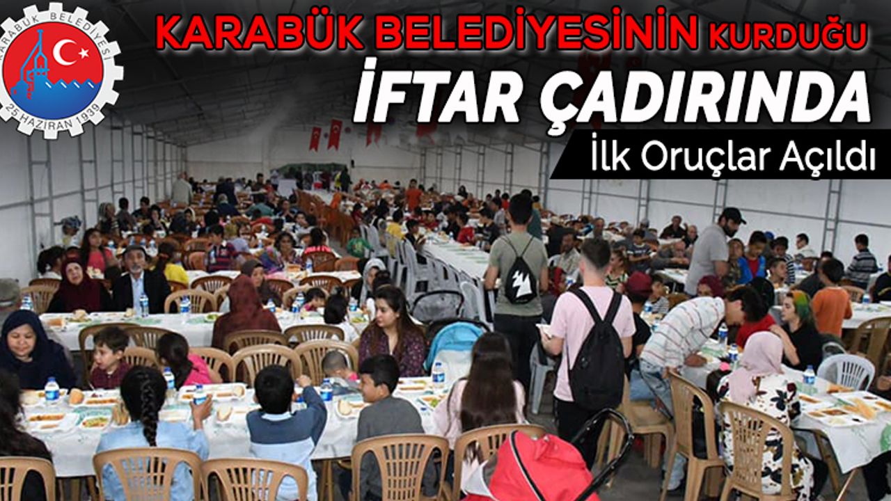 Karabük Belediyesi'nin her yıl geleneksel o k Kent Meydan'ına kurduğu iftar çadırı Ramazan Ay'ının ilk gününde büyük ilgi gördü.