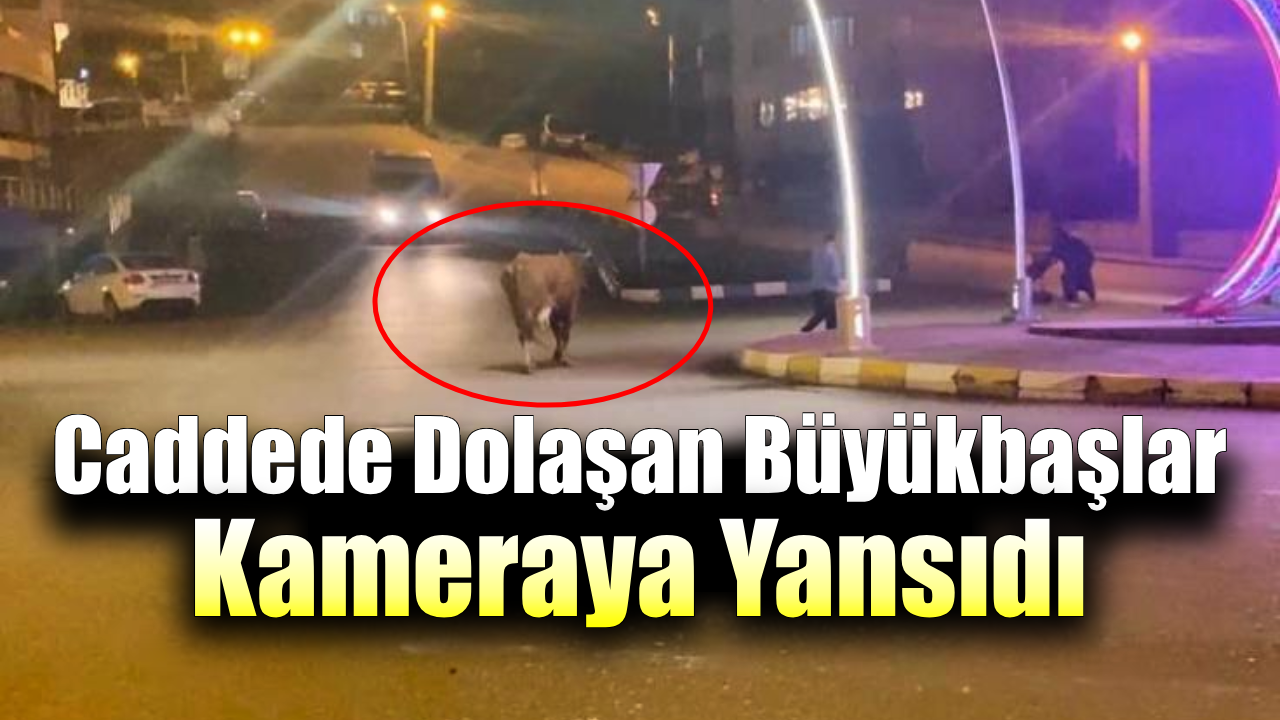 Cumhuriyet Mahallesi Şahintepe mevkisinde caddeye çıkan 3 büyükbaş hayvan bir süre araçların arasında dolaştı. Sürücüler, ilerleyebilmek için hayvanların caddeyi terk etmesini beklemek zorunda kaldı. O anlar, cep telefonu kamerasıyla kaydedildi.