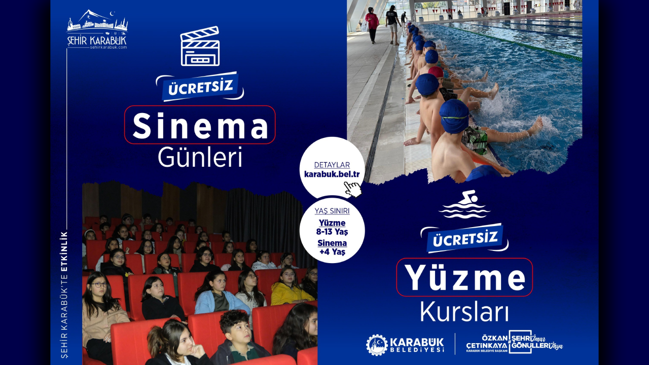 Karabük Belediyesi ile Karabük Gençlik ve Spor İl Müdürlüğü iş birliğinde gerçekleştirilen etkinlikler kapsamında, 8-13 yaş arası çocuklara yönelik yüzme kursları alanında uzman eğitmenler eşliğinde belirlenen program çerçevesinde sürdürülüyor. 4 yaş grubundaki çocuklara yönelik sinema etkinlikleri ise ücretsiz olarak sunuluyor.