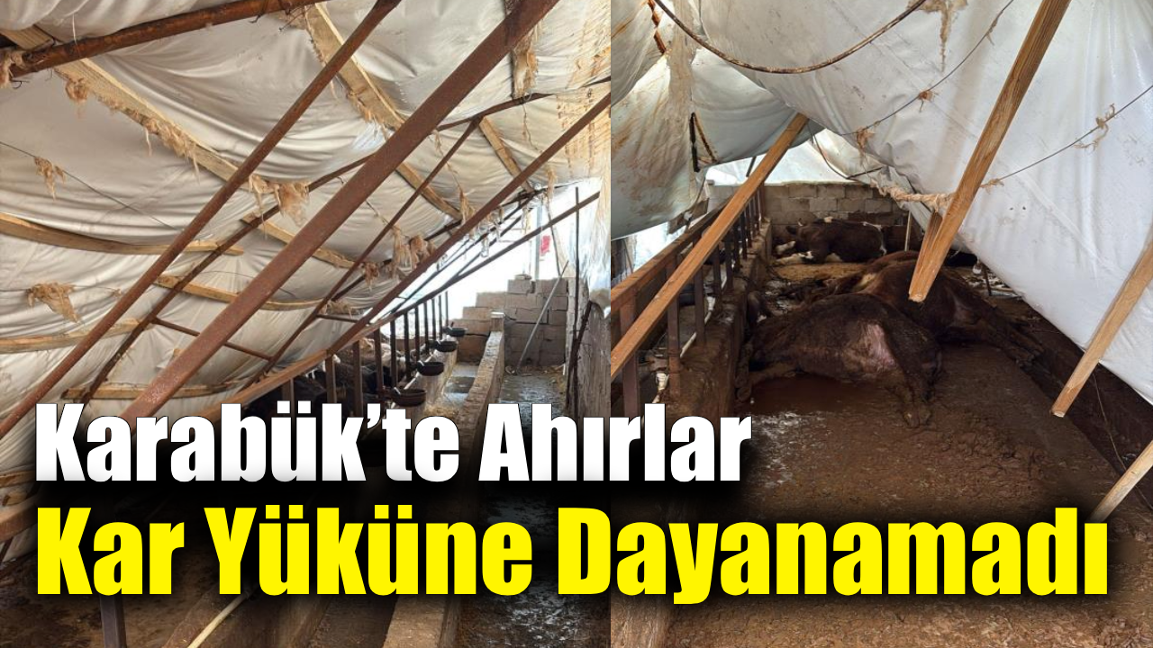 Karabük'te etkili olan yoğun kar yağışı nedeniyle üzeri çadırla kaplı ahırlar çöktü. Merkez ilçede yaşanan olayda 7 büyükbaş hayvan telef olurken, Safranbolu'da bir ahırda bulunan 15 küçükbaş hayvan ise son anda kurtarıldı.