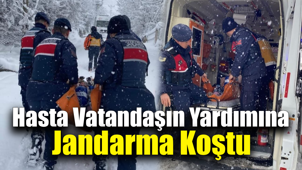 Karabük'te etkili olan kar yağışı nedeniyle köyde ikamet eden hasta vatandaşa ulaşan jandarma ekipleri, sağlık ekiplerine teslim etti.