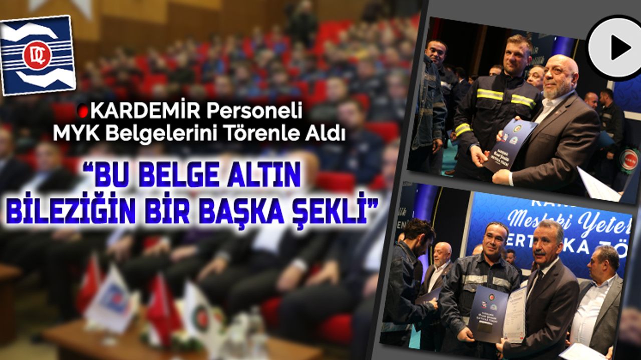 Mesleki Yeterlilik Kurumu, KARDEMİR, Hak-İş ve Özeçlik-İş Sendikası tarafından eğitimlerde başarılı olan işçilere sertifikaları törenle verildi.Törende konuşan MYK Başkanı Adem Büyük, MYK'nın yönetim anlayışının en üst düzeyde temsil edildiği kamu tüzel kişiliği olduğunu söyledi.Amaçlarının mesleğin gerektirdiği bilgi ve becerinin o kişiye sağlanması olduğunu aktaran Ceylan, "MYK tarafından yetkilendirilen 216 belgelendirme kuruluşumuz var. Bu kuruluşlarımızın yıllık sınav kapasitesi 3 milyon 500 bin. Biz, sınav belgelendirme kuruluşlarımızın kapısına 3 milyon 500 kişi gelse bir yıl içerisinde sınav yapabilme kapasitesine sahibiz. Ölçme ve değerlendirme sonucunda da bugün itibarıyla bini aşkın kişi myk belgesine kavuşmuş oldu. Hükümetimiz bu konuda mesleğinde yeterli, çalışma hayatına değer kazandıracak. Aynı zamanda iş kazalarını asgariye indirecek bu sistemi etkin bir şekilde destekliyor. Bakanlığımız tarafından belge zorunluluğu getirme yetkisi verilen 225 meslek bulunmakta. Bu mesleklerin tamamı tehlikeli ve çok tehlikeli meslekler. Bakanlık o k şuana kadar 143 meslekte belge zorunluluğu getirdik" diye konuştu.