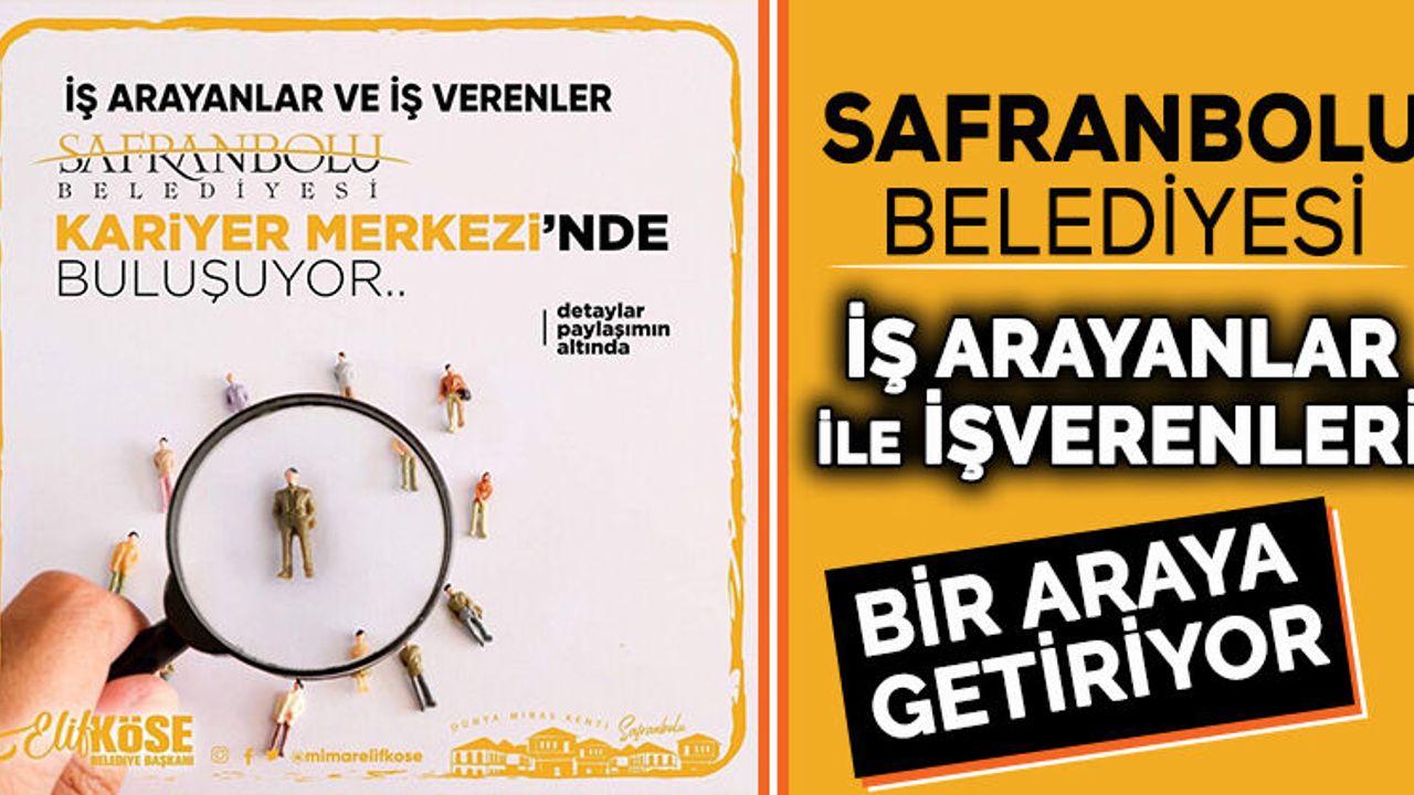 Safranbolu Belediye Başkanı Elif Köse’nin 31 Mart Yerel Seçimlerinde, seçim projesi olan ‘Kariyer Merkezi’ projesi hayata geçiyor.Faaliyete geçirilmesi planlanan projede, işveren ile iş arayan vatandaşların bir araya getirilmesi hedefleniyor ve istihdam sağlanması amaçlanıyor.Sosyal medya hesabı üzerinden uygulamaya konulması planlanan projeyi duyurdu. Safranbolu Belediye Başkanı Elif Köse; “İstihdam açısından çok önemli olan projelerimizden birini daha faaliyete geçiriyoruz. Vatandaşlarımızın Kariyer Merkezi aracılığıyla iş verenlere, personel arayan ve istihdam yaratma düşüncesi olan tüm iş verenlerin de vatandaşlarımıza kolay ulaşabilecekleri bir havuz yaratmayı hedeflemekteyiz.” İfadelerini kullandı.Ayrıca açıklamasında Safranbolu Belediyesi’ne bugüne kadar 500’ü aşkın iş arayan kişilerin CV bırakıldığını belirtti. Başkan Köse; “Göreve geldiğimiz günden bu güne kadar 500'ü aşan CV'nin (özgeçmiş) belediyemizin halk masasına kaydı yapılmıştır. Saha elemanı ve evrak kontrol sistemi ile istihdama katkıda bulunacağız. Bu projemizde siz de iş arayan veya iş veren o k Halk Masası üzerinden kaydınızı yaptırabilirsiniz.” dedi.