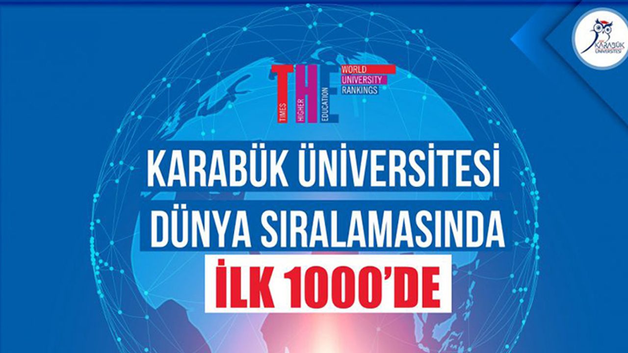 Times Higher Education (THE)’ın 2020 yılı için yayımladığı dünyanın en iyi üniversiteleri sıralamasında Karabük Üniversitesi ilk 1000 arasına girdi.Dünyanın en saygın üniversite derecelendirme organizasyonlarından biri olan Times Higher Education (THE) 2020 sıralamasında Karabük Üniversitesi dünyanın en iyi ilk 1000 üniversitesi arasında yer a k büyük bir başarıya imza attı.Times Higher Education (THE)’ın 2020 yılı için yayımladığı dünyanın en iyi üniversiteleri sıralaması belli oldu. Sıralamaya göre Karabük Üniversitesi büyük bir başarı gösterdi. “Dünyanın En İyi 1000 Üniversitesi” arasına girdi.Sıralamada ilk 1000 arasına Türkiye’den 11 üniversite girmeyi başardı. Karabük Üniversitesi, Ankara ve İstanbul dışında listeye girmeyi başaran tek üniversite oldu.Türkiye’den ilk 1000’e giren üniversiteler:1-Çankaya Üniversitesi2-Sabancı Üniversitesi3-Bilkent Üniversitesi4-Hacettepe Üniversitesi5-Koç Üniversitesi6-Boğaziçi Üniversitesi7-İstanbul Teknik Üniversitesi8-Ortadoğu Teknik Üniversitesi9-Atılım Üniversitesi10-İstanbul Üniversitesi11-Karabük Üniversitesi