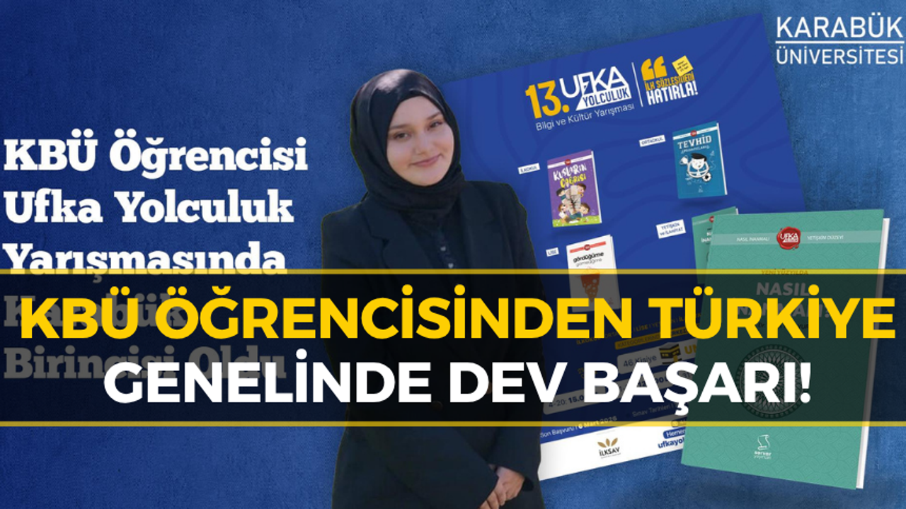 Karabük Üniversitesi İlahiyat Fakültesi öğrencisi Esra Çetinkaya, 13’üncü Ufka Yolculuk Bilgi ve Kültür Yarışması’nda gösterdiği performansla dikkat çekti. İlahiyat kategorisinde Karabük birincisi olan Çetinkaya, Türkiye genelinde ise 57’nci sırada yer alarak önemli bir başarıya imza attı.