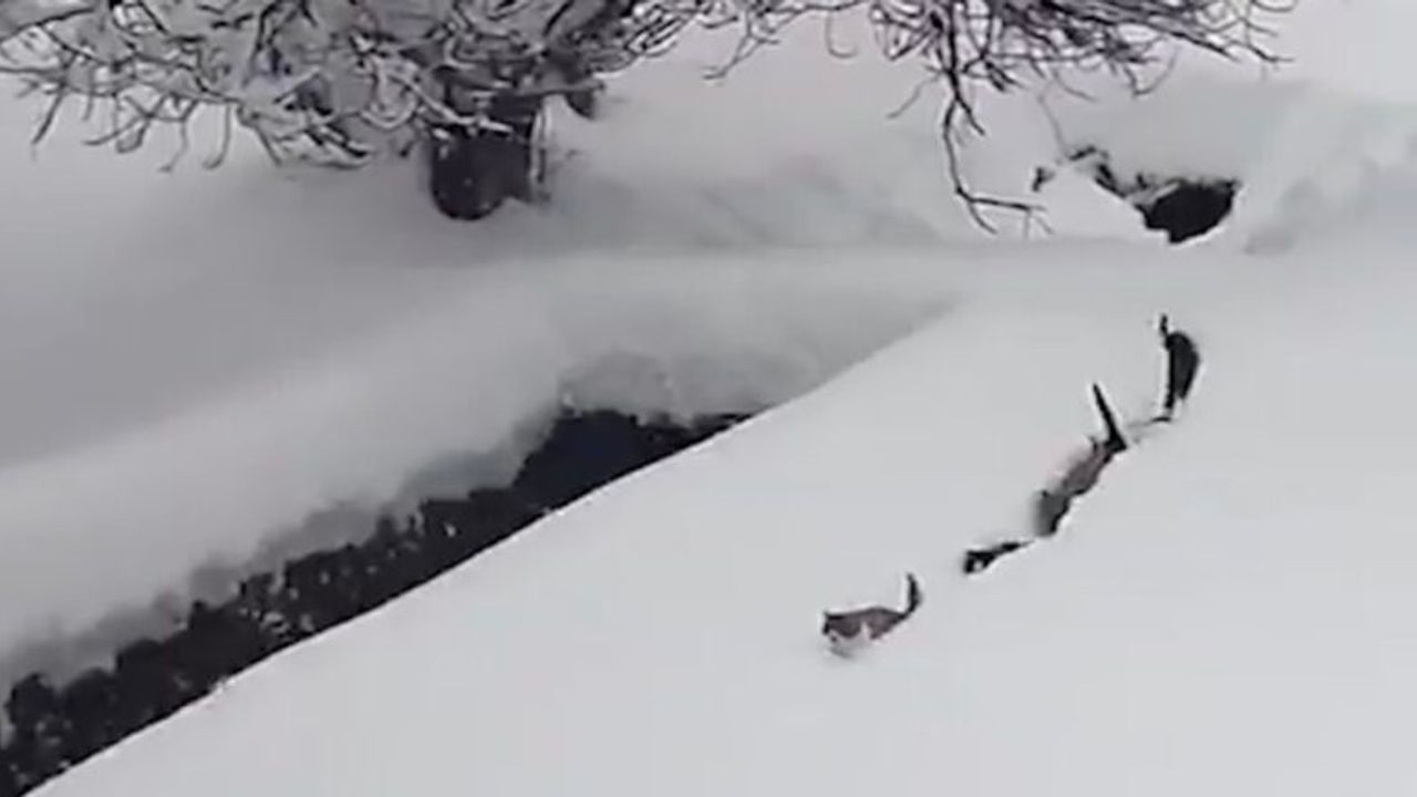 Kastamonu'nun Çatalzeytin ilçesinde köy imamının seslendiği kedilerin sıralı şekilde karda yürümeye çalıştığı anlar kameraya yansıdı.