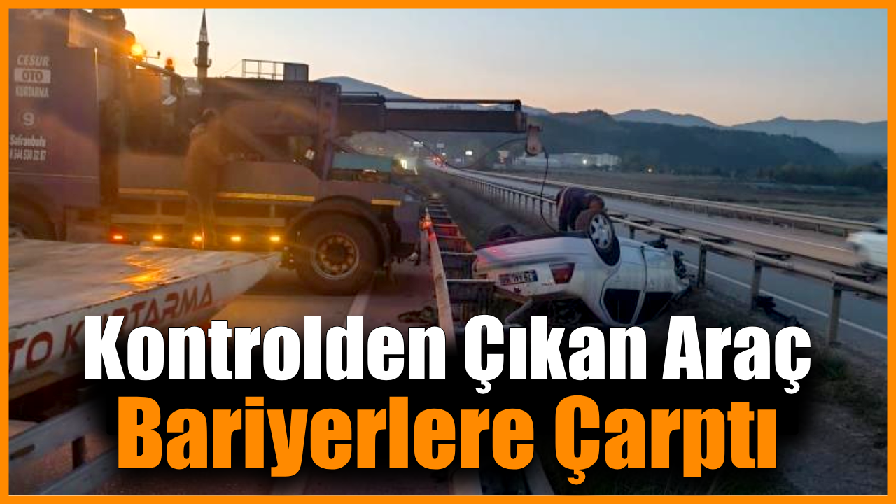 Karabük’te kontrolden çıkan otomobilin demir bariyerlere çarparak takla atması sonucu 2 kişi yaralandı.