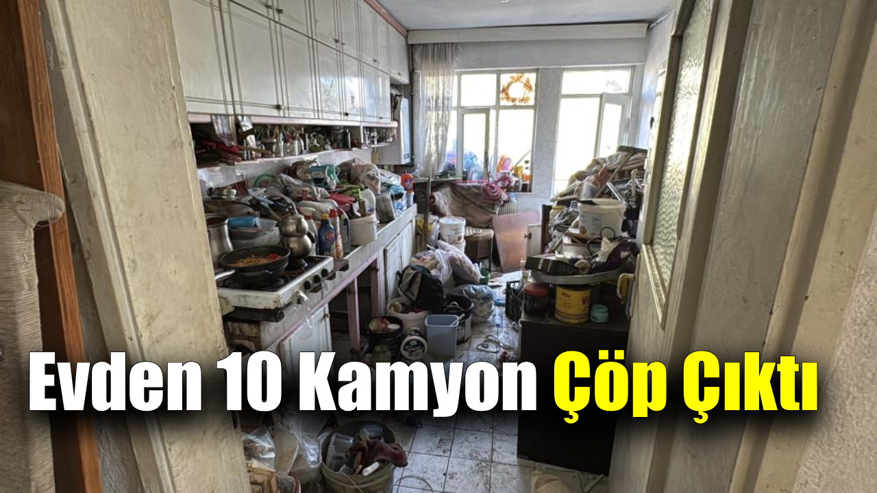 Karabük'te mahalle sakinlerinin ihbarı üzerine bir eve giden belediye ekipleri, ev ve bahçeden yaklaşık 10 kamyon çöp çıkardı.