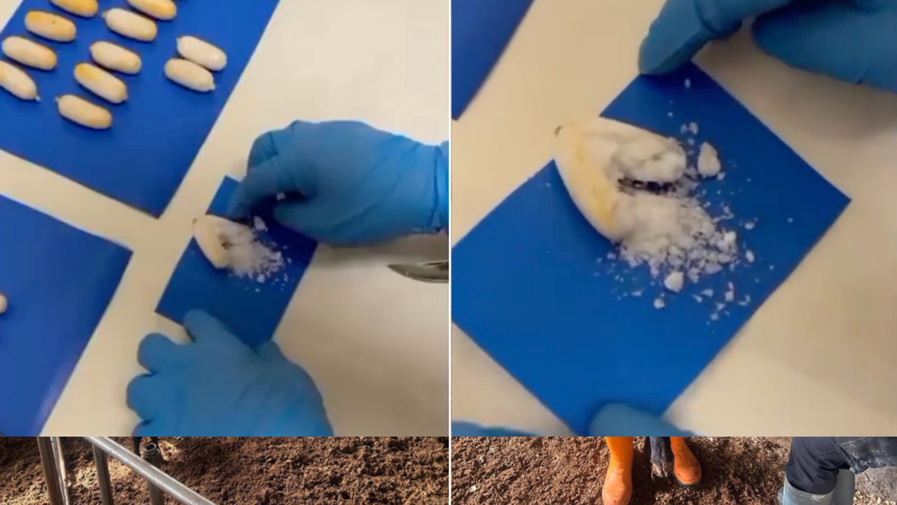 Arama sırasında, yutma yöntemiyle ülkeye sokulduğu ve dışkı yoluyla çıkarıldığı belirlenen 33 paket halinde toplam 258,31 gram metamfetamin, ayrıca 7 şeffaf kilitli poşette 20,73 gram metamfetamin ve 0,10 gram bonzai yakalandı.