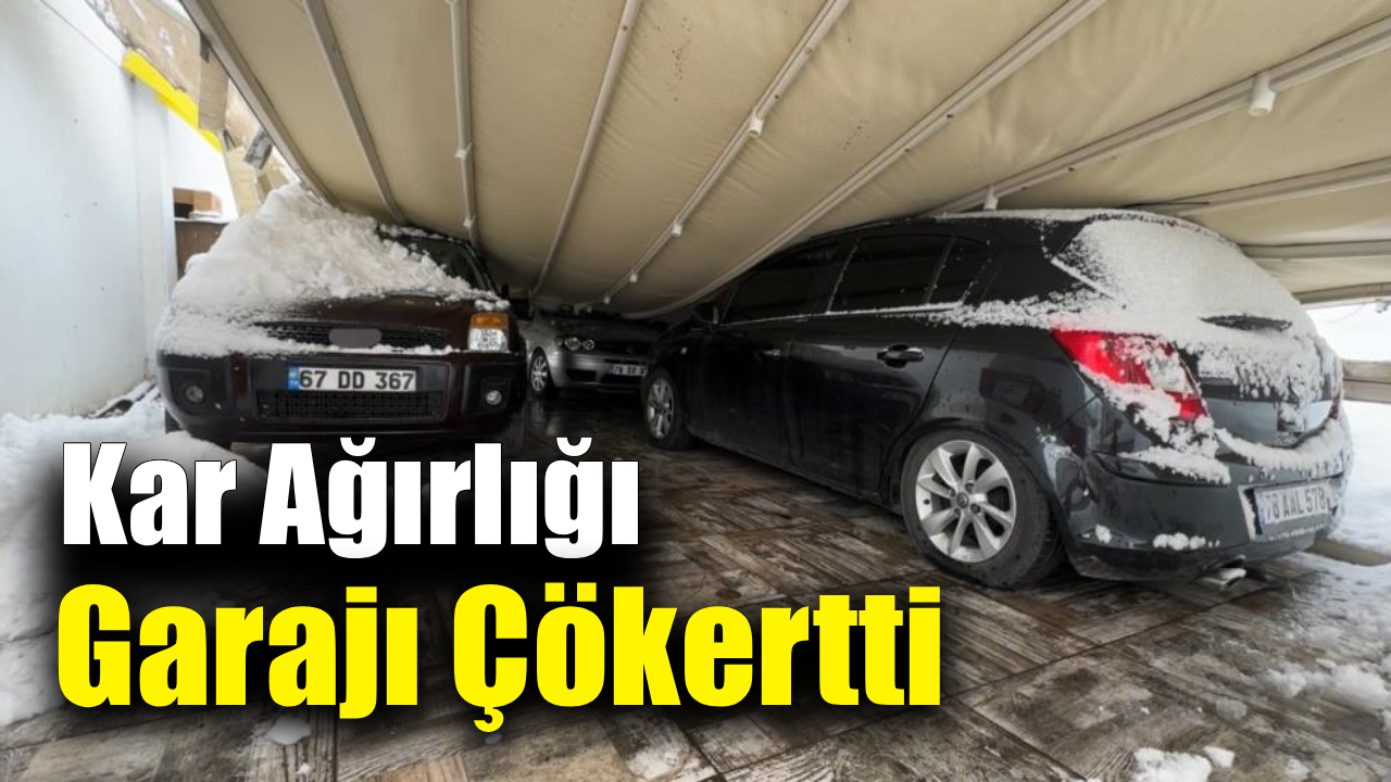 Karabük'ün Safranbolu ilçesinde kar ağırlığına dayanamayan bir garajın çökmesi sonucu 3 araç zarar gördü.