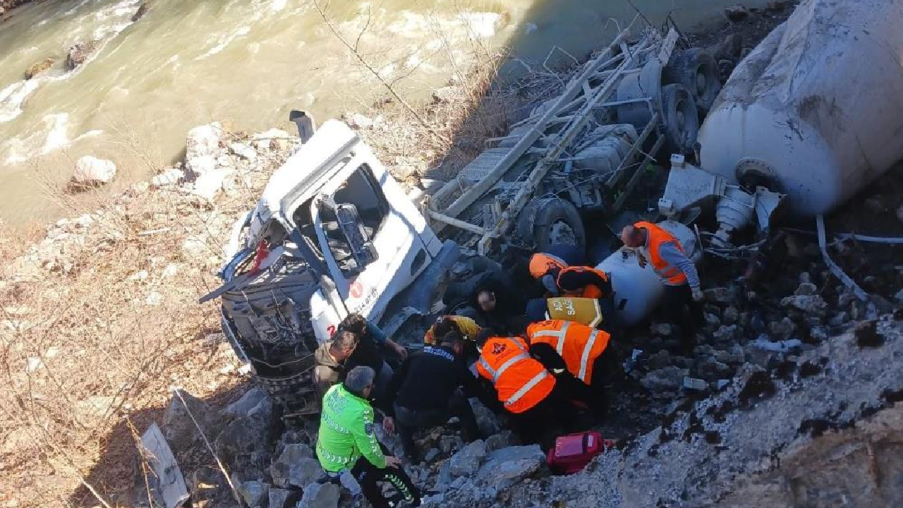 Kastamonu’nun Şenpazar ilçesinde köprüden dere yatağına devrilen beton mikserinin sürücüsü ağır yaralandı.