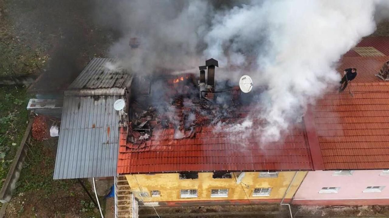 Yangında evde büyük çapta maddi hasar oluşurken, son anda kurtulan babaanne ve torunu büyük üzüntü yaşadı.