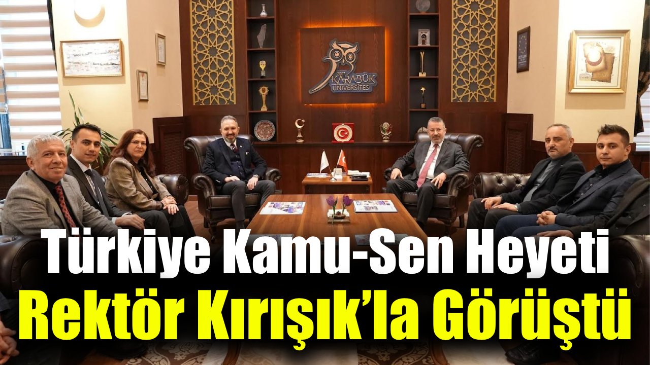 Türkiye Kamu-Sen ile TÜRKAV’ın Karabük il temsilcileri ve konfederasyona bağlı sendikaların temsilcileri, Karabük Üniversitesi Rektörü Prof. Dr. Fatih Kırışık’ı makamında ziyaret etti. Nezaket ziyaretinde, sendika-üniversite iş birliği başlıkları üzerine değerlendirmeler yapıldı.