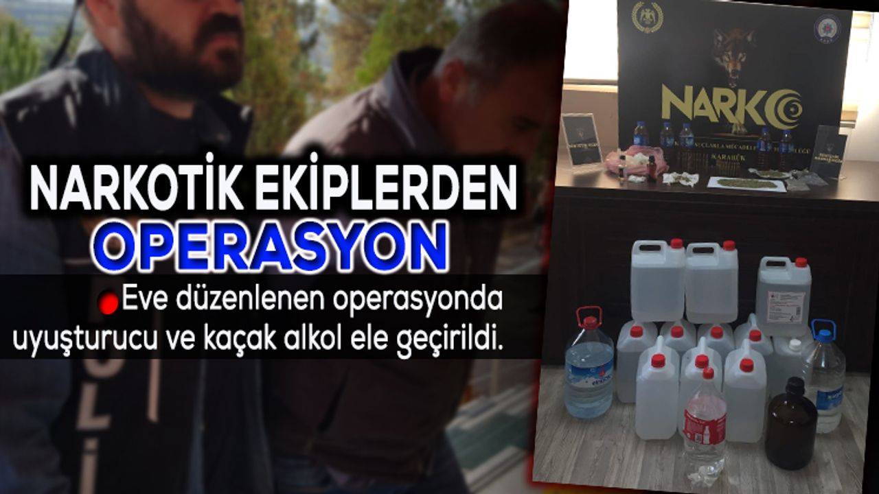 Karabük’te Narkotik ekiplerinin yaptığı uyuşturucu ve kaçak alkol operasyonunda bir kişi gözaltına alındı. Narkotik Suçlarla Mücadele Şube Müdürlüğü ekipleri A.G. isimli şahsın uyuşturucu satışı yaptığı ihbarı üzerine evine operasyon düzenledi. Aramalarda kannobinoid (Bonzai) maddesi, Neurotin tablet ile birlikte kaçak içki yapımında kullanılan maddeler ve kaçak içki bulundu. İkisi kullanılmış 11 adet 5 litrelik beyaz renkli bidonda bulundu. İçerisinde etil alkol, pet şişe içerisinde viski, alkol yapımında kullanılan kit. Kristalize madde ile birlikte 17 adet G3, 23 adet M16 ve bir adet Bixi mermisi ele geçirildi.A.G isimli şahıs hakkında uyuşturucu madde temin ve ticareti (TCK 188) ile, 5607 SKM ve 6136 SKM suçlarından soruşturma başlatıldı. Emniyette ifadesi alınan A.G. daha sonra sağlık kontrolünden geçirilerek, adliyeye sevk edildi.