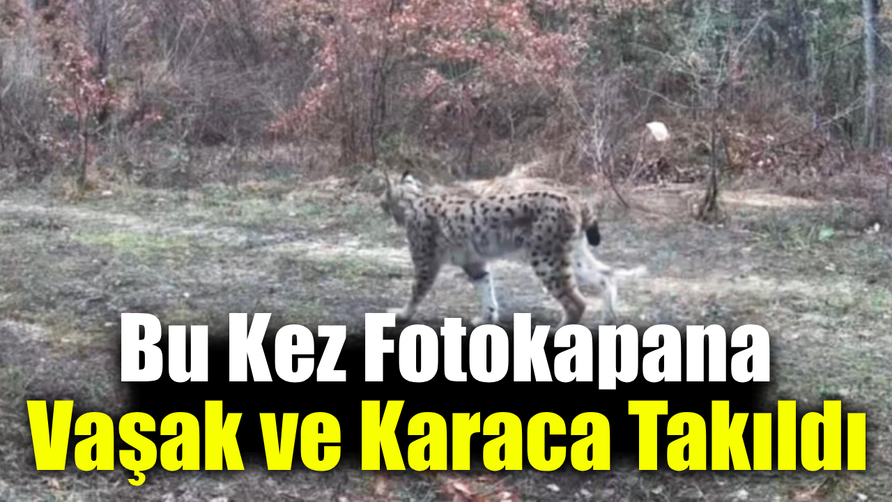Karabük’ün Ovacık ilçesinde kurulan fotokapan, vaşak ile karaca yavrusunu görüntüledi.
