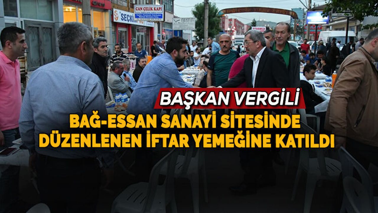 Bağ-Essan Sanayi Sitesi esnafları tarafından düzenlenen iftar yemeğine katılan Başkan Vergili, masaları tek tek ziyaret etti. Başkan Vergili vatandaşlarla sohbet ederek; ramazan ayını kutlayıp, sağlık ve sıhhat içinde bayrama kavuşmalarını diledi.