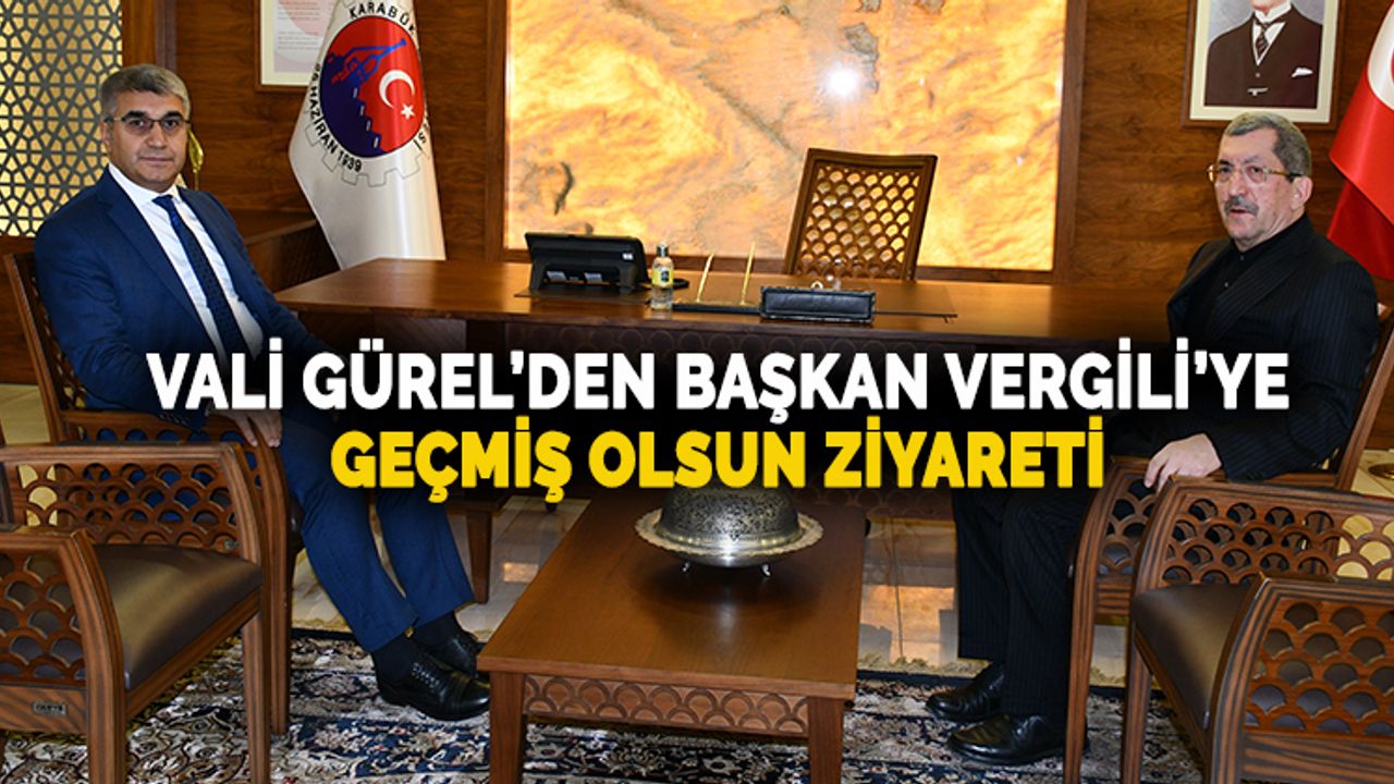 Geçirdiği ameliyat sonrası görevinin başına geçen Başkan Vergili'yi makamında ziyaret eden Vali Gürel, geçmiş olsun dileklerini iletti.
