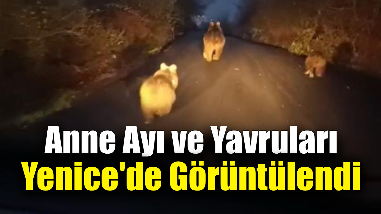 Karabük'ün Yenice ilçesinde anne ayı ve iki yavrusu yolda koşarken cep telefonu kamerasıyla görüntülendi.