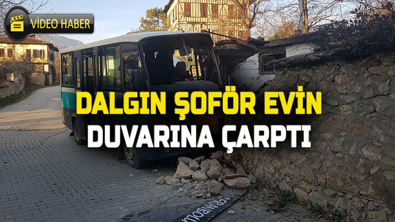 Karabük'te kazaların ardı arkası kesilmiyor. Bu kez de seyir halindeki yolcu minibüsü şoförün dalgınlığı sonucu evin duvarına çarptı.